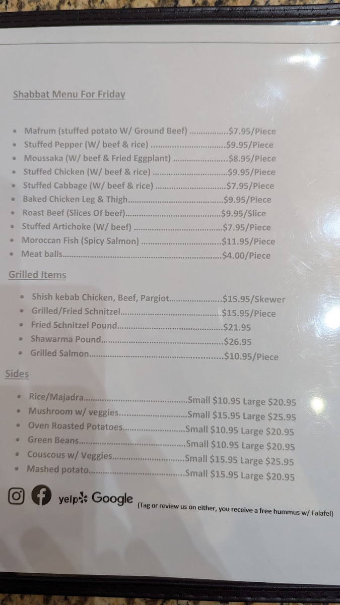 Introducing the menu at Haifa Restaurant, a gem nestled on W Pico Blvd in Los Angeles, where Mediterranean flavors come to life. The menu showcases an impressive array of salads, featuring fresh favorites like Israeli Salad and Turkish Salad, each priced affordably. The hummus and baba ghanoush stand out, rich in taste and authenticity, winning rave reviews from guests.